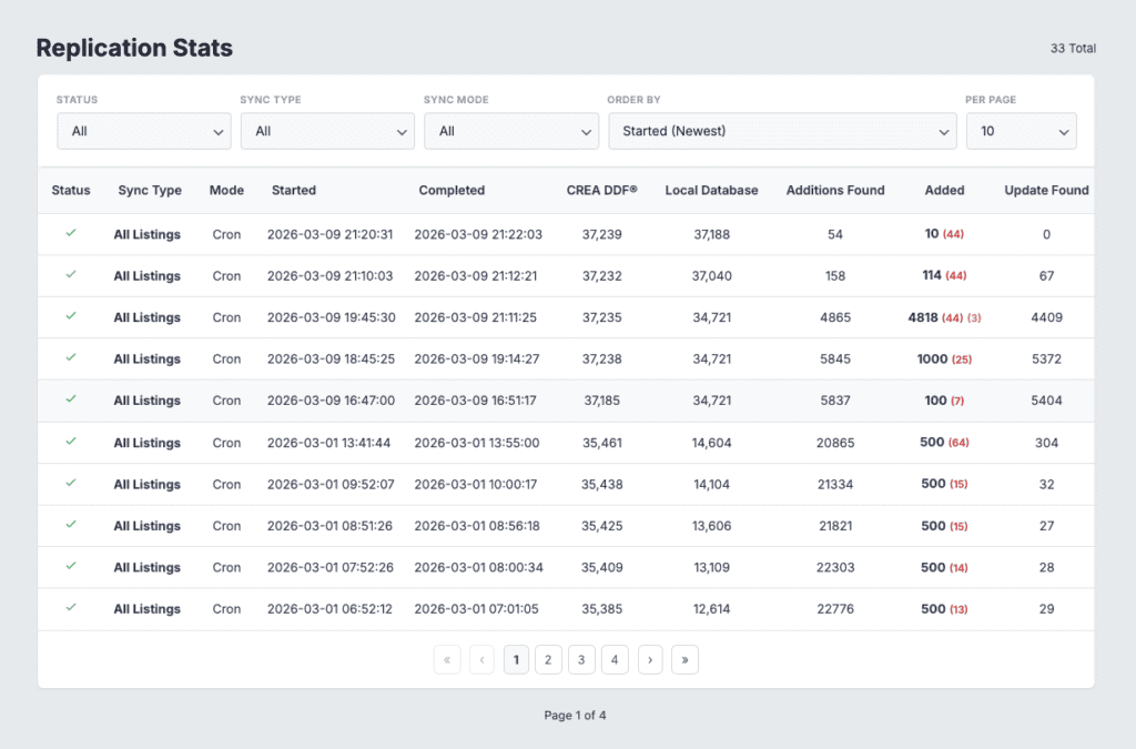 - Replication stats tracking — see additions, updates, and deletions for every sync operation, with a dedicated admin page and filterable table view.